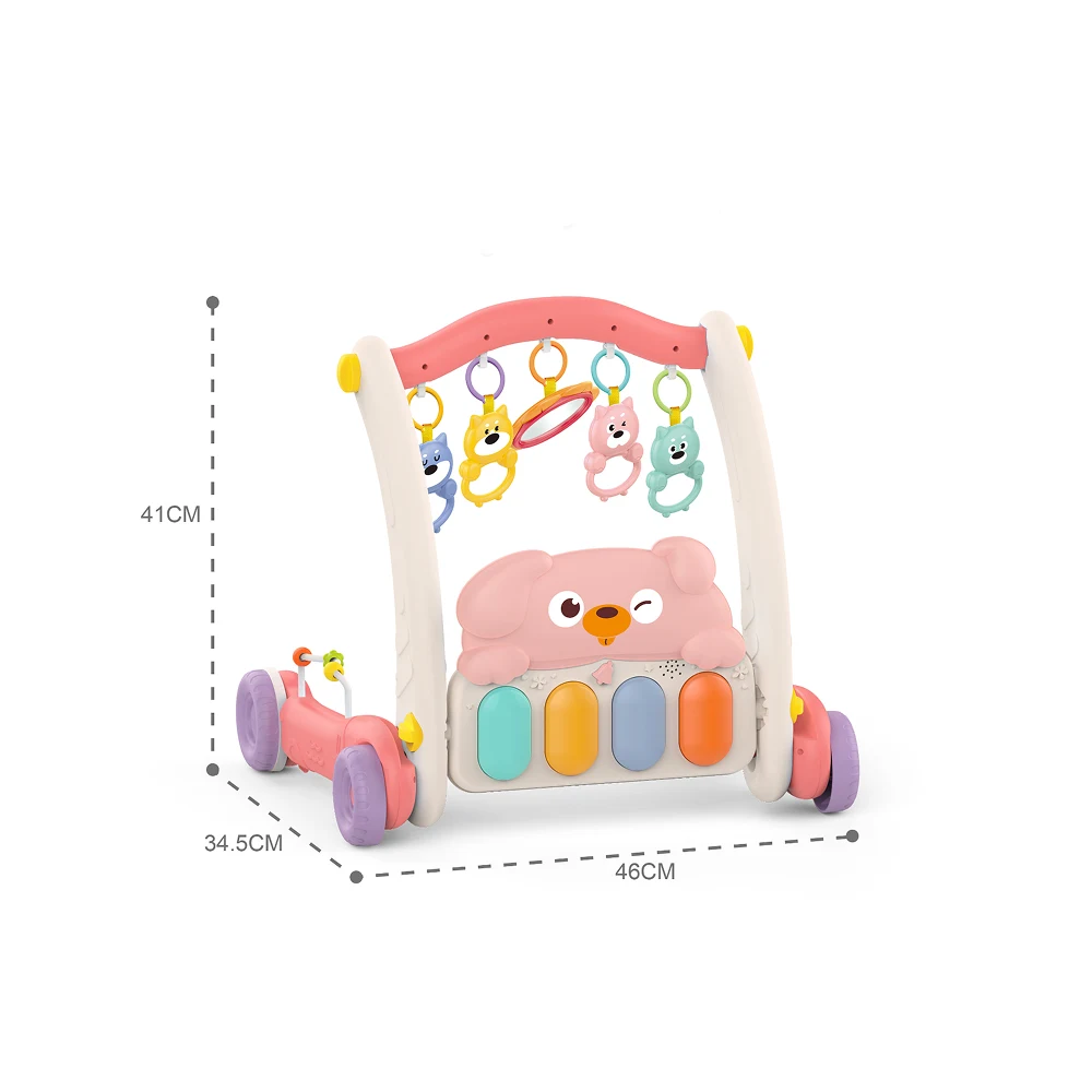 Pe măsură ce copilul crește, produsul se transformă ușor într-un premergător stabil, ajutând la exersarea echilibrului și la susținerea primilor pași. Panoul frontal cu activități interactive și elemente mobile contribuie la dezvoltarea senzorială, motrică și cognitivă.