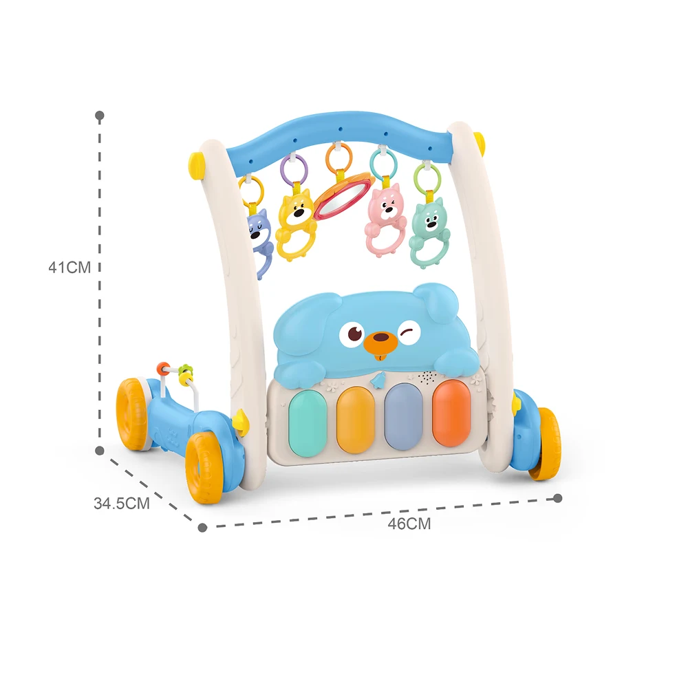 Pe măsură ce copilul crește, produsul se transformă ușor într-un premergător stabil, ajutând la exersarea echilibrului și la susținerea primilor pași. Panoul frontal cu activități interactive și elemente mobile contribuie la dezvoltarea senzorială, motrică și cognitivă.
