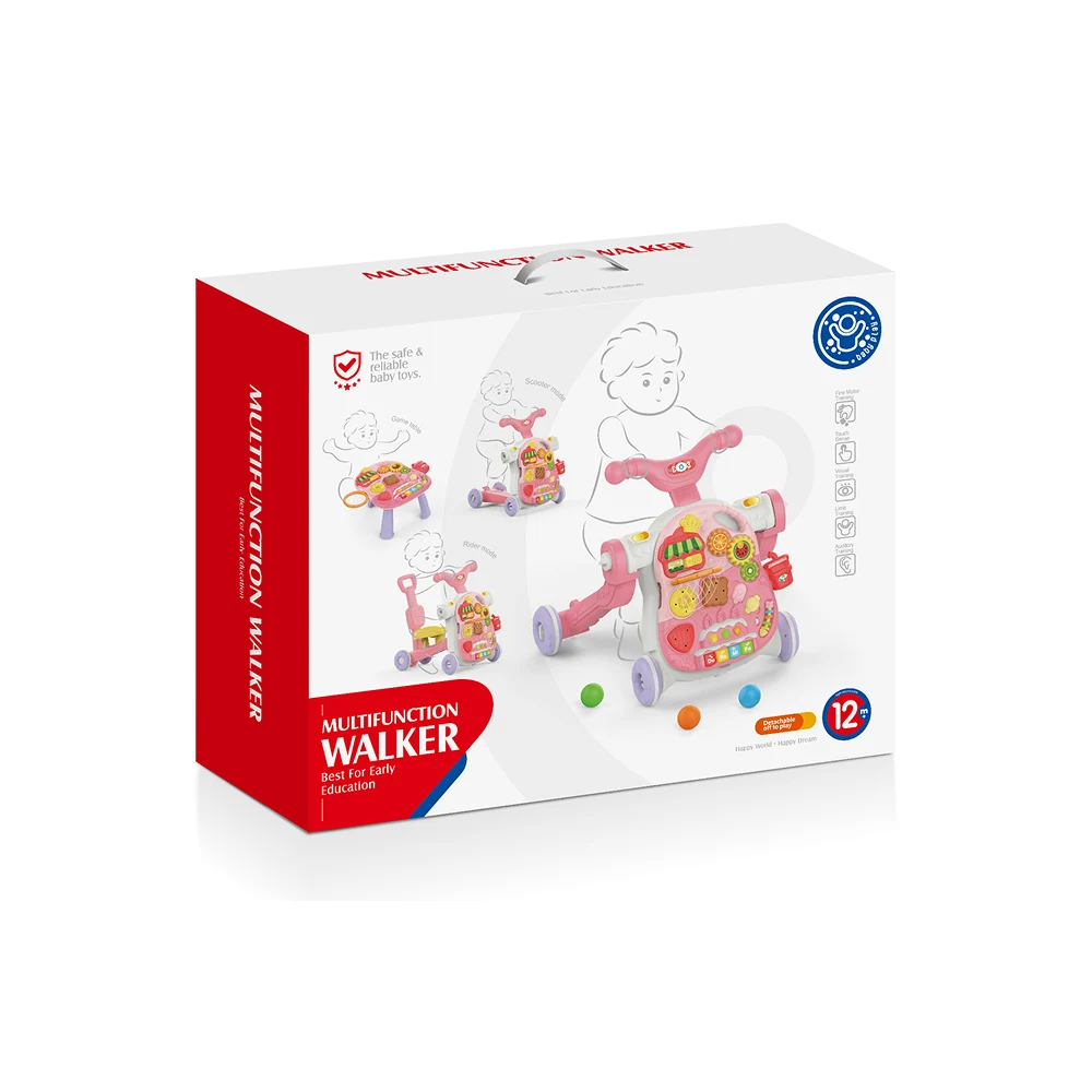 Acest premergător multifuncțional 4 în 1 este o jucărie educativă completă, adaptată diferitelor etape de dezvoltare ale bebelușului. Poate fi utilizat ca premergător pentru mers, masă de activități, jucărie de împins sau panou educativ detașabil.