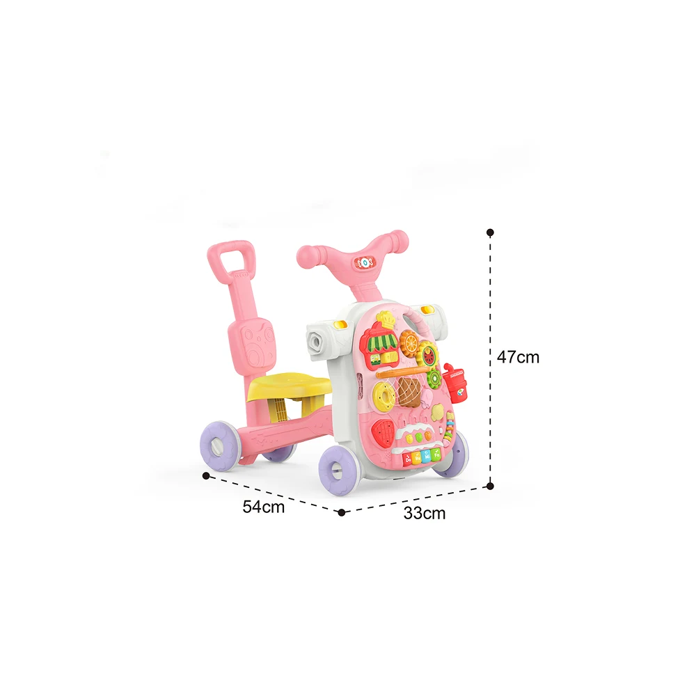 Premergător multifuncțional 4 în 1, conceput pentru a sprijini primii pași ai bebelușului și pentru a stimula dezvoltarea prin activități interactive, lumini și muzică.