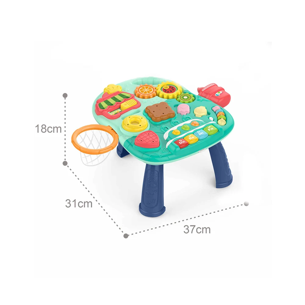 Panoul frontal este dotat cu diverse elemente interactive, precum butoane, forme, rotițe, sunete și lumini, care contribuie la stimularea simțurilor, dezvoltarea coordonării mână-ochi și recunoașterea formelor și culorilor. Activitățile variate mențin interesul copilului și încurajează explorarea și joaca independentă.