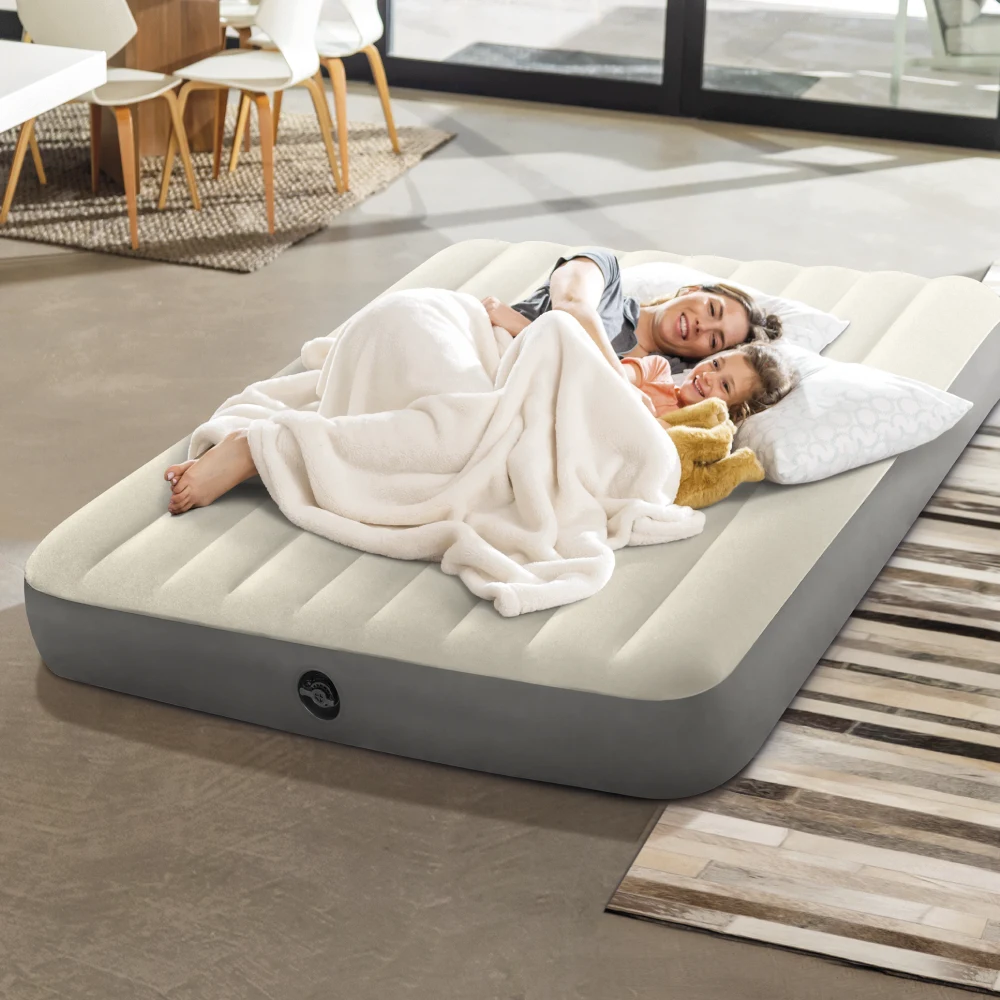 Stratul superior moale oferă un nivel bun de confort în timpul somnului și ajută la menținerea lenjeriei la locul ei, fiind totodată ușor de curățat. Salteaua este echipată cu o supapă practică 2-în-1, compatibilă cu pompe manuale sau electrice, permițând umflarea și dezumflarea rapidă.