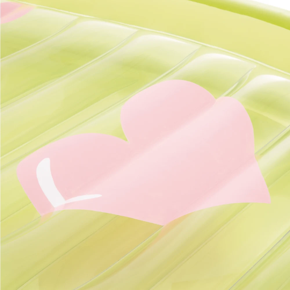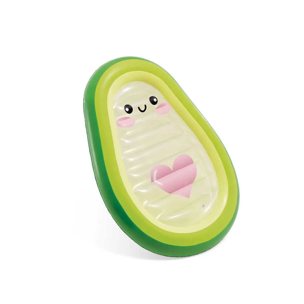 Saltea gonflabilă pentru apă, cu design atractiv în formă de avocado, ideală pentru relaxare la piscină, lac sau mare. Zona centrală transparentă oferă un efect vizual plăcut și o experiență diferită de plutire.