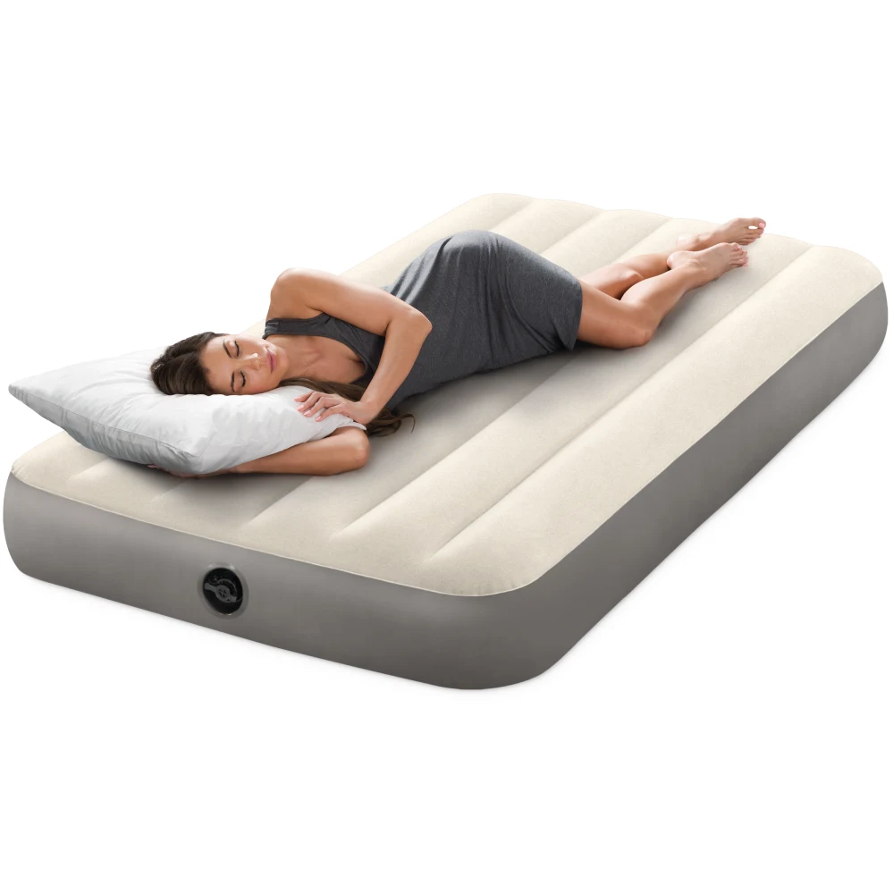 Stratul superior moale contribuie la un somn plăcut și ajută la menținerea lenjeriei la locul ei, fiind totodată ușor de întreținut. Salteaua este prevăzută cu o supapă practică 2-în-1, compatibilă cu pompe manuale sau electrice, pentru umflare și dezumflare rapidă.