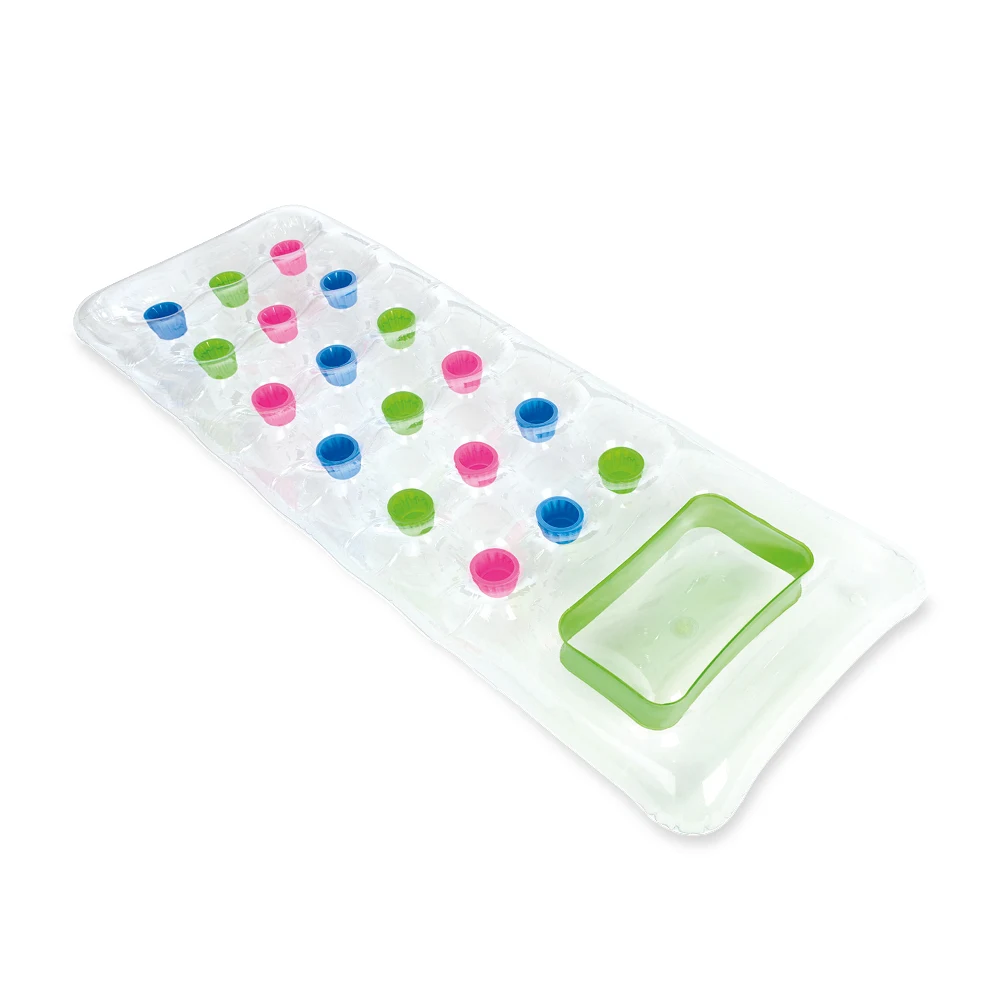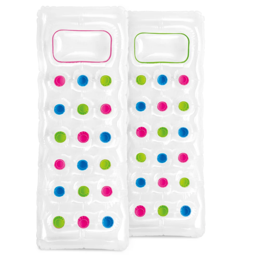 Această saltea gonflabilă pentru apă este concepută pentru momente de relaxare la piscină sau la mare. Designul transparent, completat de fereastra integrată, oferă un aspect modern și o experiență vizuală atractivă în timpul utilizării.
