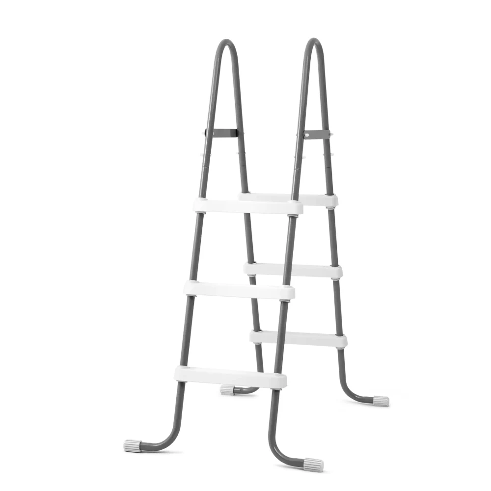 Modelul este prevăzut cu 3 trepte pe fiecare parte, realizate din material durabil, cu suprafață antiderapantă pentru un plus de siguranță la urcare și coborâre. Forma curbată a bazei asigură o poziționare stabilă pe sol, iar designul fără platformă îl face potrivit pentru piscinele supraterane standard.