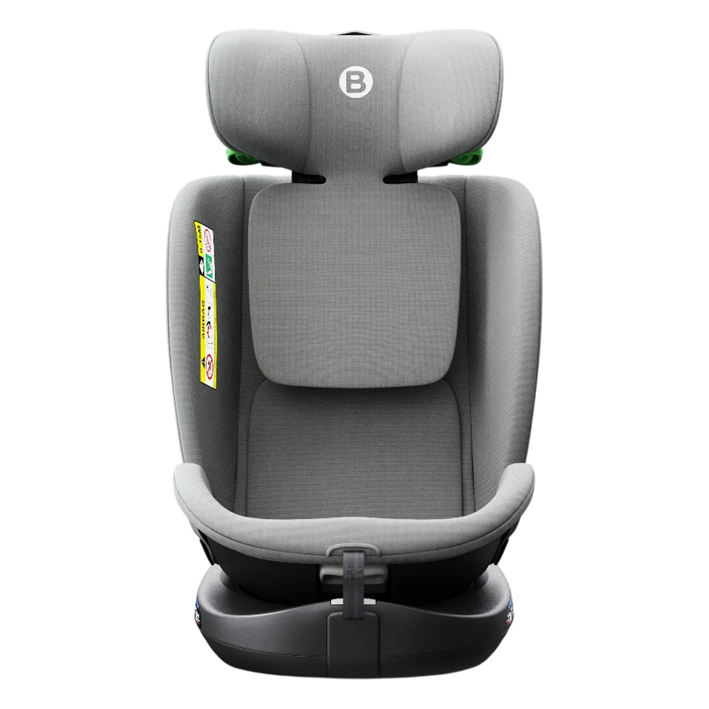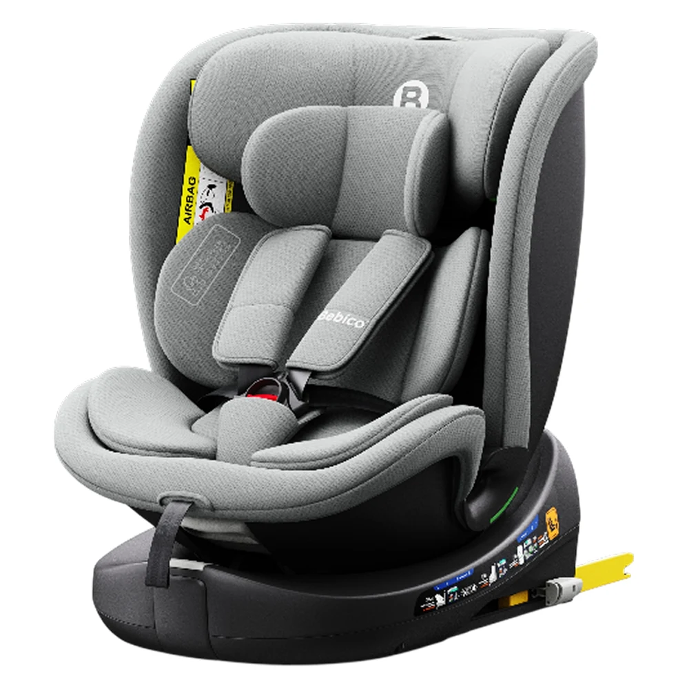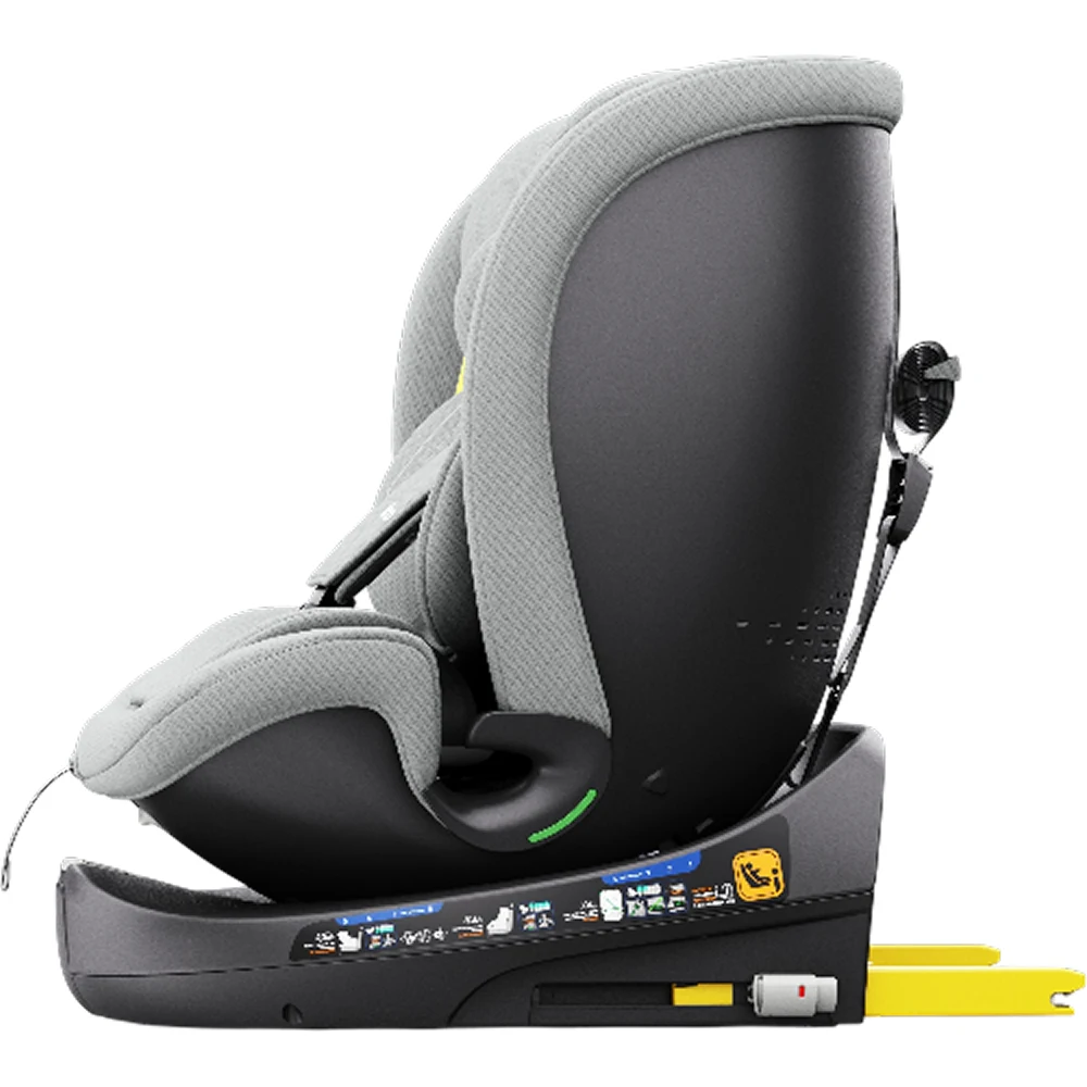 Scaun auto pentru copii 40–150 cm cu Isofix și rotire 360°, certificat R129, reglaje multiple și protecție adaptată fiecărei etape.