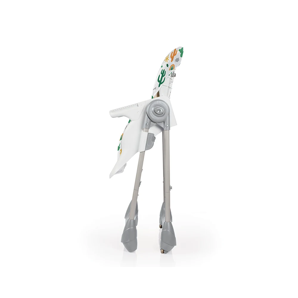 Este dotat cu tavă practică pentru servirea mesei și centură de siguranță, asigurând o poziție corectă și protecție sporită copilului. Materialele sunt ușor de curățat, iar montajul este rapid și intuitiv.