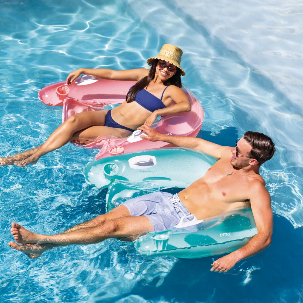 Scaun gonflabil pentru relaxare pe apă, conceput pentru a oferi confort și stabilitate în timpul plutirii. Dispune de mânere și suporturi pentru pahare, fiind ideal pentru momentele de relaxare în piscină sau pe apă calmă.
