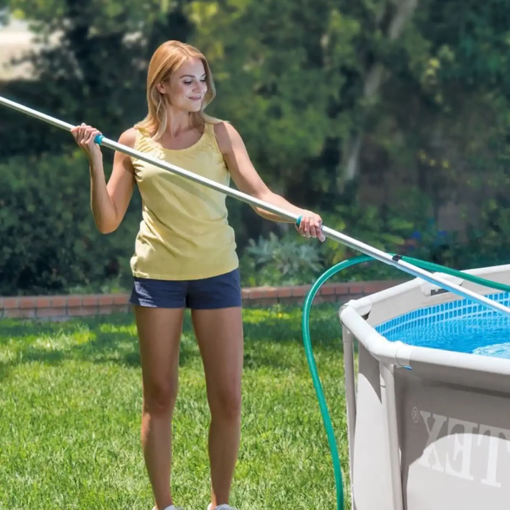 Setul este compatibil cu tijă telescopică din aluminiu de 239 cm articol 29054 (vândută separat), oferind acces facil în toate zonele bazinului.