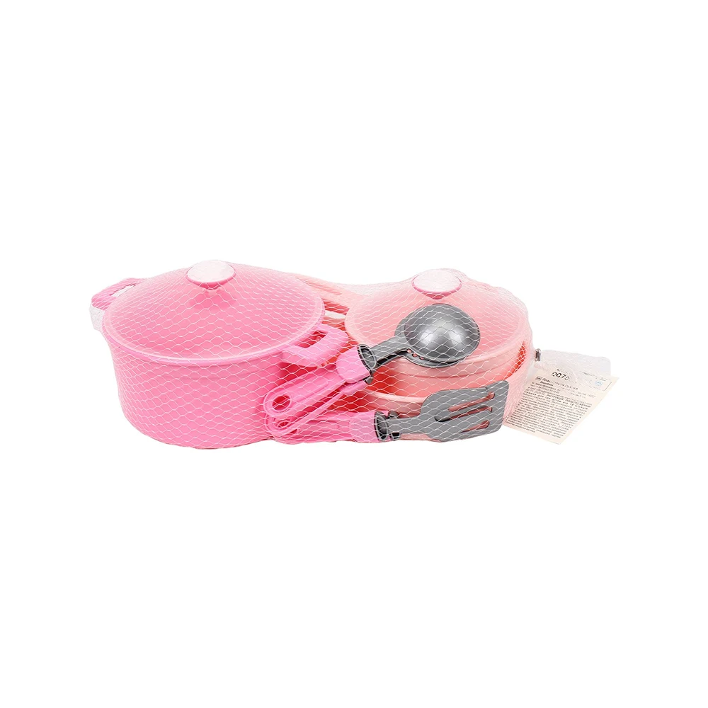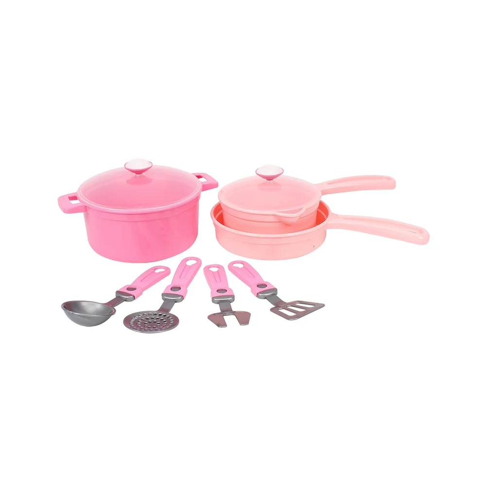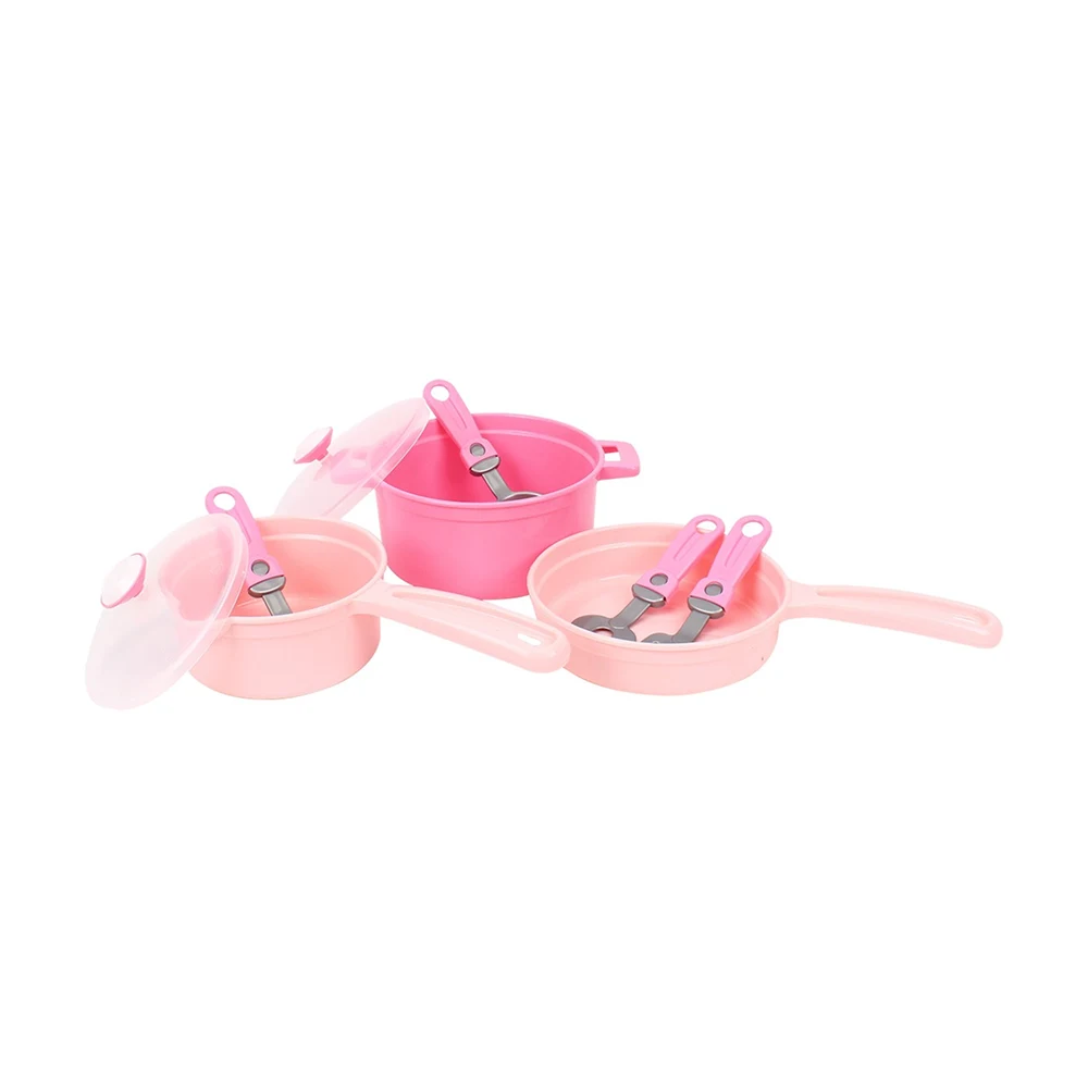 Setul de gătit pentru copii include cratițe și ustensile de bucătărie, oferind celor mici o experiență distractivă și educativă în jocurile de rol.