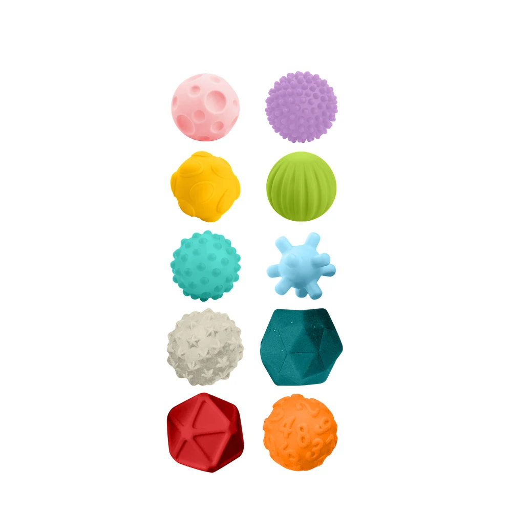Acest set de mingi senzoriale este ideal pentru explorarea tactilă, vizuală și motrică a bebelușilor. Fiecare minge are o formă și o textură diferită, încurajând copilul să apuce, să strângă, să rostogolească și să descopere senzații noi în timpul jocului.