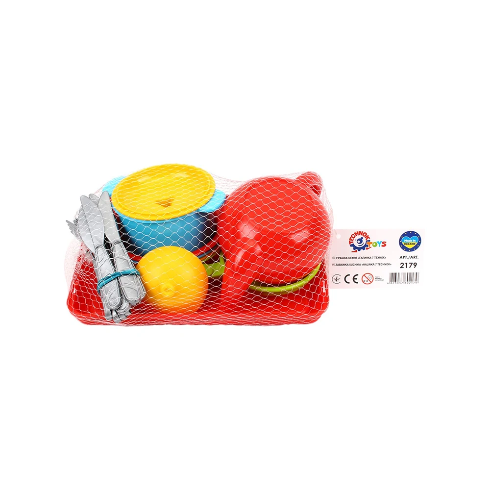 Setul de veselă Galinca este special conceput pentru jocurile de rol ale copiilor, oferindu-le ocazia să imite activitățile din bucătărie într-un mod sigur și distractiv. Conform imaginii, setul include un aragaz de jucărie cu două ochiuri și butoane rotative, ceainic, oală cu capac, tigaie, farfurii colorate și tacâmuri.