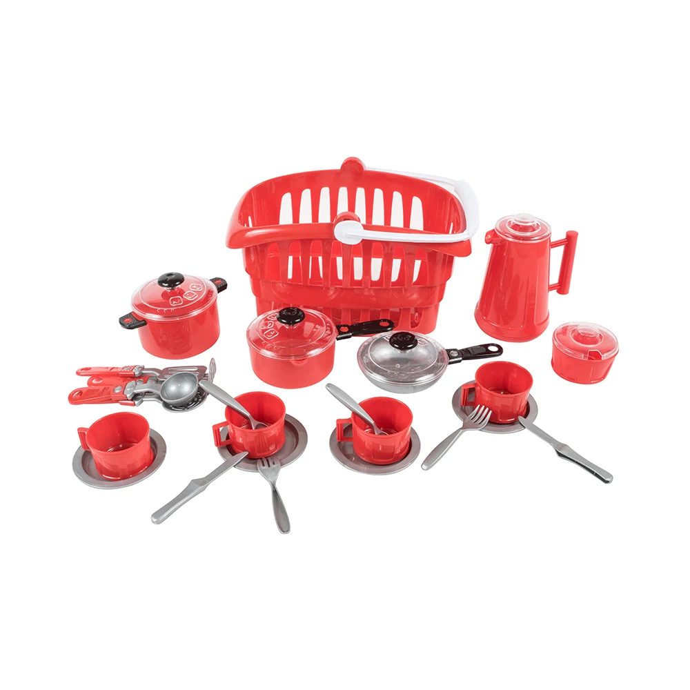 Setul de veselă Irishka 8 este o jucărie completă, creată pentru micii pasionați de gătit și jocuri de rol. Recomandat de la 3+ ani, acest set include un coș pentru vase, ceainic cu capac, oală mare, oală mică, tigaie, 4 căni cu farfurii, tacâmuri pentru 4 persoane și ustensile de bucătărie.