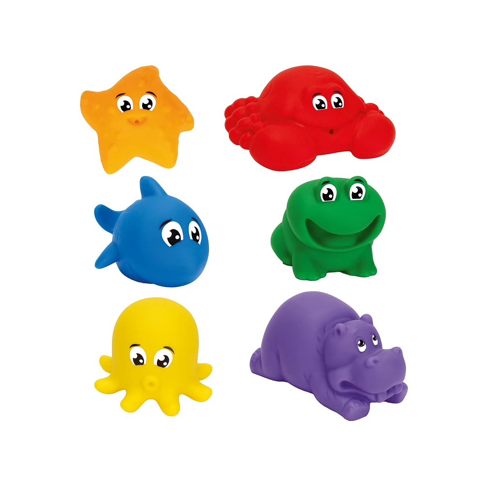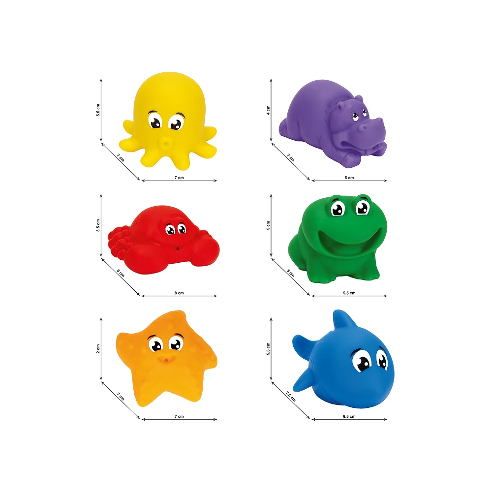 Setul de jucării pentru baie este special conceput pentru copiii mici, transformând timpul băii într-o experiență plăcută și relaxantă. Jucăriile au forme prietenoase de animăluțe marine, ușor de recunoscut și atractive pentru cei mici.