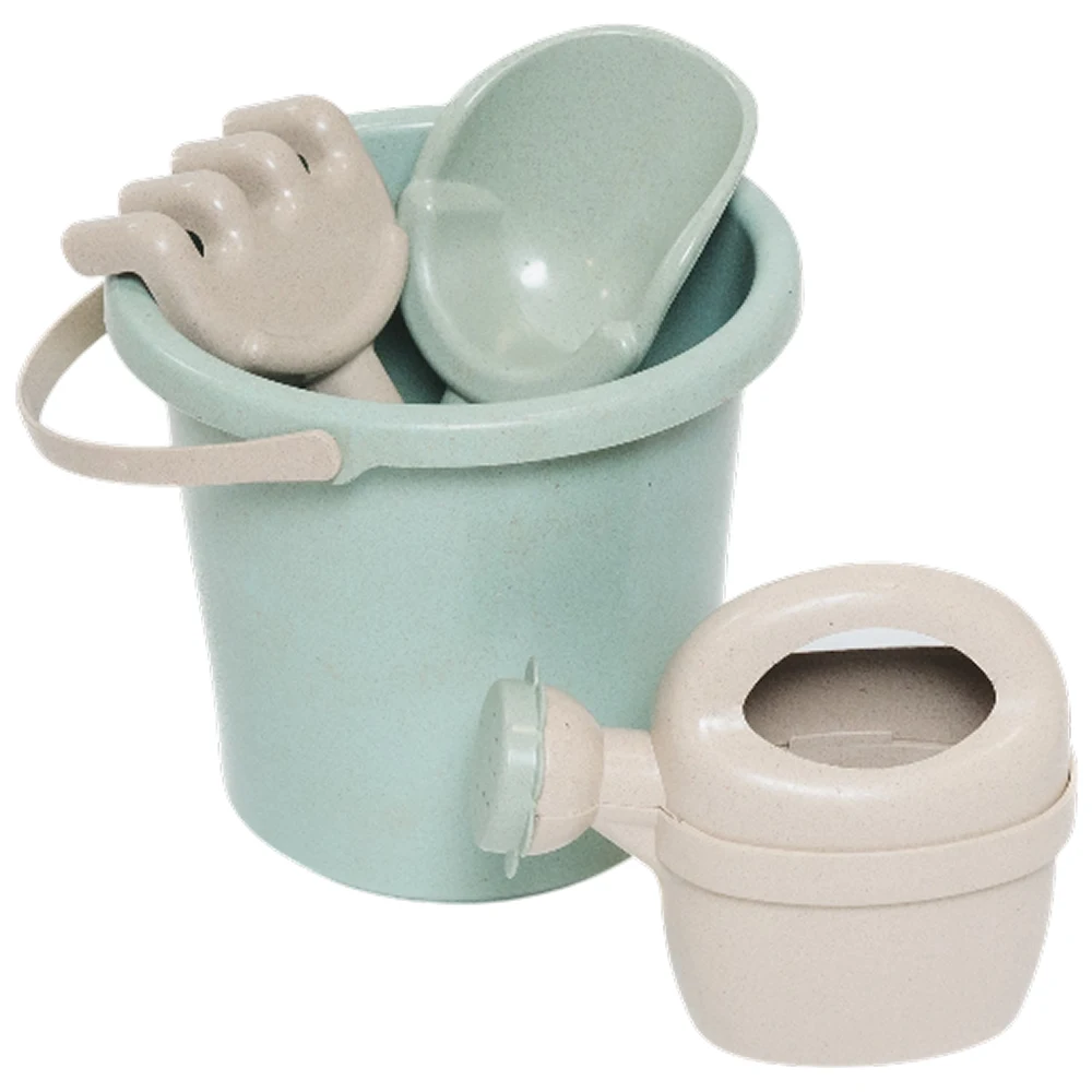 Set jucării pentru nisip cu găleată, stropitoare, lopățică și greblă, ideal pentru joacă în aer liber și dezvoltarea creativității.