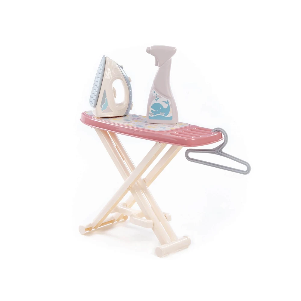 Set de masă de călcat pentru copii, cu fier de jucărie și accesorii, ideal pentru jocuri de rol și imitarea activităților zilnice într-un mod distractiv.