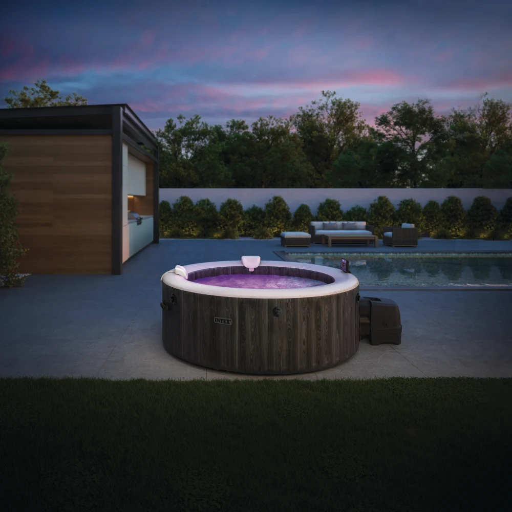 Spa-ul gonflabil cu hidromasaj PureSpa™ Greywood Deluxe oferă o experiență premium de relaxare pentru până la 4 persoane, având o capacitate de 795 L și un design elegant cu finisaj tip lemn gri, potrivit pentru terasă sau grădină.