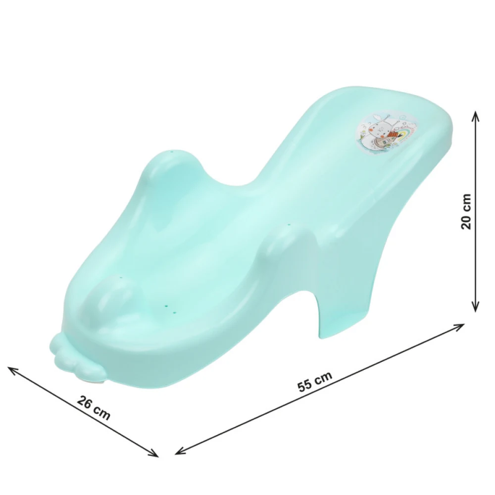 Suport de baie pentru bebeluși conceput pentru a oferi susținere stabilă și confort în timpul băii. Forma ergonomică ajută la poziționarea corectă a copilului, facilitând utilizarea în siguranță.