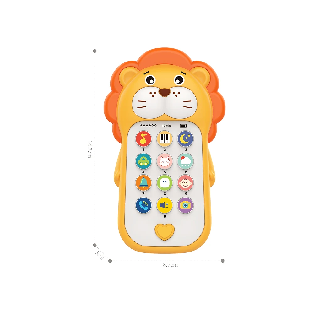 Acest telefon muzical interactiv în formă de leu este o jucărie educativă ideală pentru primele etape de dezvoltare ale copilului. Designul prietenos și culorile vii atrag atenția, iar butoanele mari sunt ușor de apăsat de mânuțele mici.