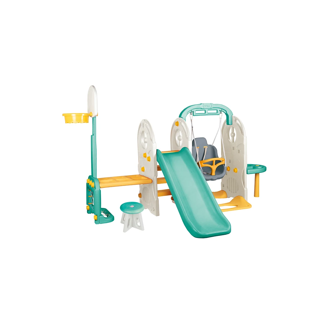 Terenul de joacă pentru copii 7 în 1 este un ansamblu complet de activități conceput pentru a oferi copiilor distracție variată și dezvoltare fizică armonioasă. Setul include mai multe elemente integrate care permit desfășurarea diferitelor tipuri de joc, de la alunecare și legănare, până la activități sportive și creative.