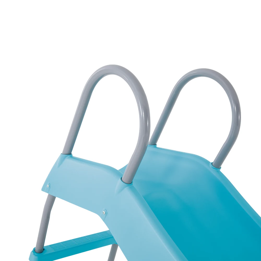 Acest tobogan este conceput pentru utilizare la exterior, având o structură rezistentă care oferă stabilitate în timpul folosirii. Cadrul metalic solid susține eficient ansamblul, iar suprafața de alunecare din plastic este netedă și confortabilă, permițând o alunecare lină.