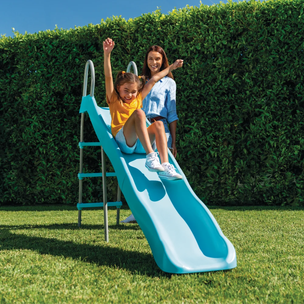 Dimensiunile generoase oferă suficient spațiu pentru joacă, iar designul este potrivit pentru amplasare în curte sau grădină. Toboganul este gândit pentru utilizare zilnică în sezonul cald, fiind o alegere practică pentru activități în aer liber.