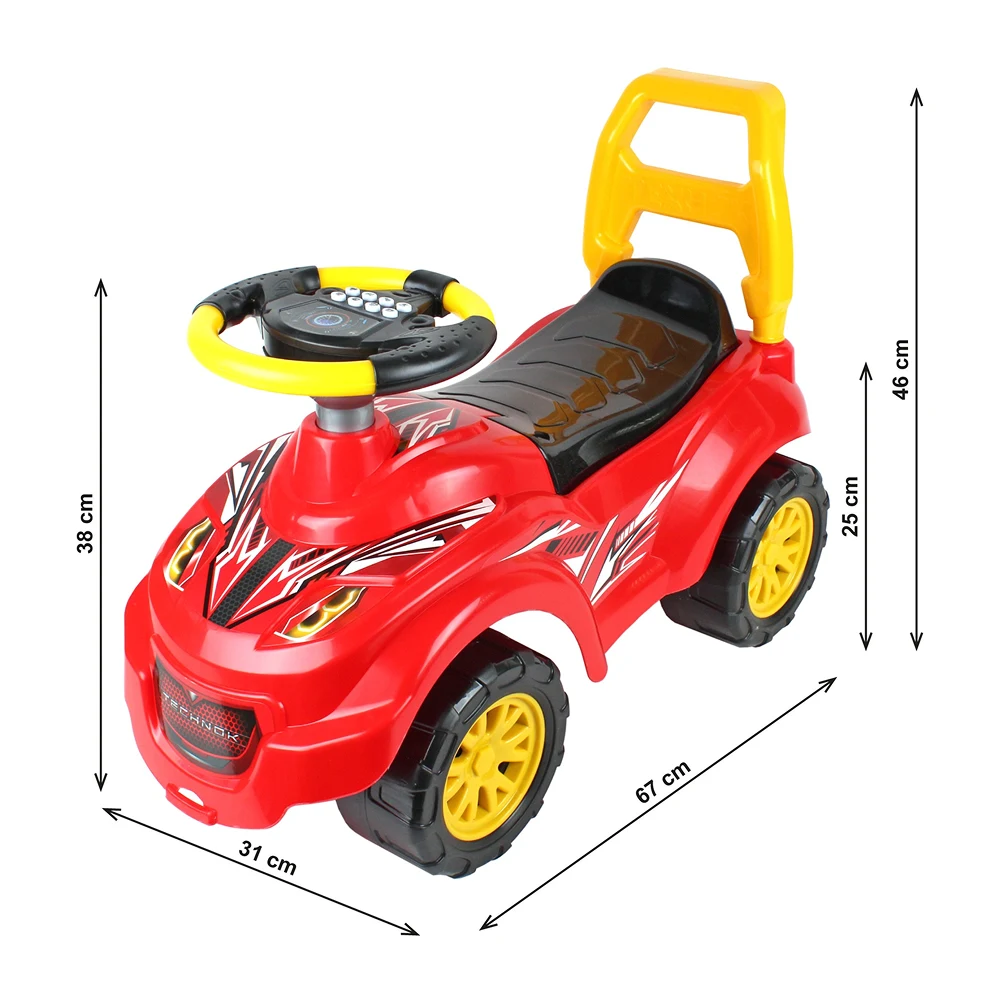 Tolocarul pentru copii tip mașină este conceput special pentru micii exploratori care adoră mișcarea și jocurile dinamice. Designul ergonomic, cu volan ușor de manevrat și spătar de susținere, oferă confort și stabilitate în timpul utilizării.