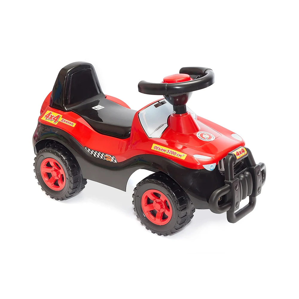 Cu un design inspirat din modelele off-road, tolocarul stimulează imaginația și jocurile de explorare. Roțile late, volanul ergonomic și construcția solidă asigură o deplasare confortabilă și stabilă. Scaunul bine profilat permite copilului să stea în siguranță și să se joace ore întregi.