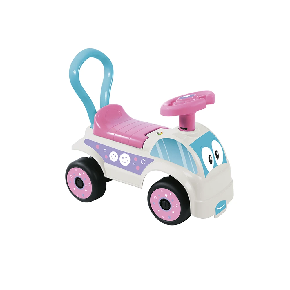 Este prevăzut cu claxon pentru un plus de distracție și cu un compartiment de depozitare sub șezut, ideal pentru jucării sau accesorii mici. Ajută la dezvoltarea echilibrului, coordonării și a musculaturii picioarelor, fiind o jucărie excelentă pentru primele experiențe de deplasare independentă.