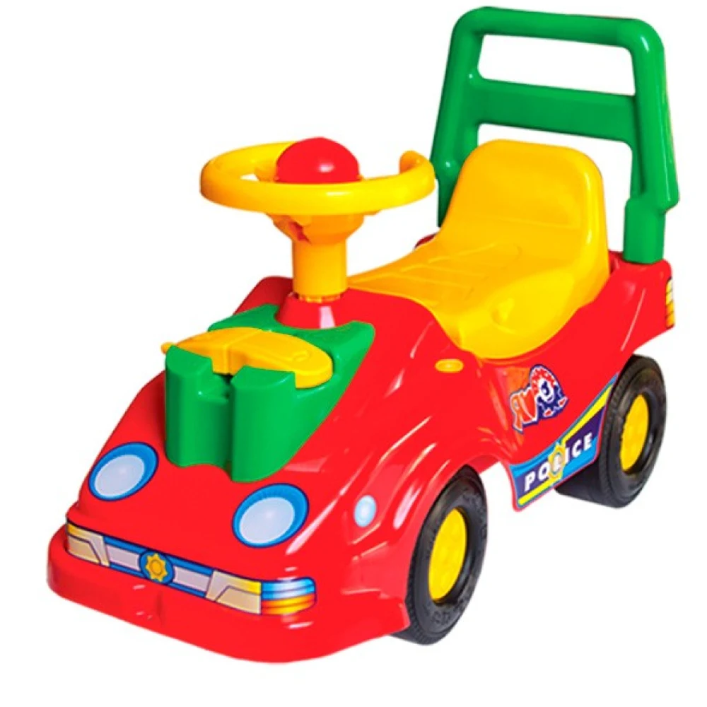 Tolocarul este conceput pentru deplasare prin împingere și joacă activă, oferind stabilitate și confort în utilizare. Modelul este prevăzut cu spătar, care oferă susținere, și cu claxon pentru un plus de interactivitate în timpul jocului.