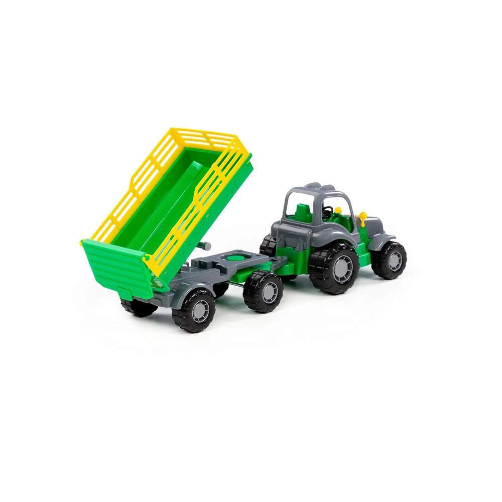 Tractorul cu remorcă Nr.2 este o jucărie robustă și practică, ideală pentru joaca zilnică a copiilor pasionați de utilaje agricole și transport.
