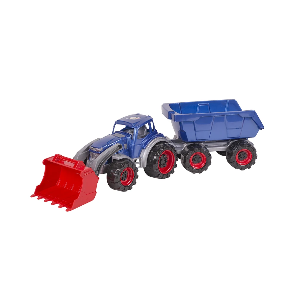 Realizat din plastic durabil și non-toxic, modelul garantează rezistență și siguranță în timpul jocului. Mecanismele mobile ale încărcătorului și remorca ușor de atașat stimulează coordonarea, creativitatea și jocul de rol. Cu dimensiunea totală de 640 × 180 × 170 mm, jucăria este suficient de mare pentru a face joaca realistă, dar și ușor de manevrat de către copii.