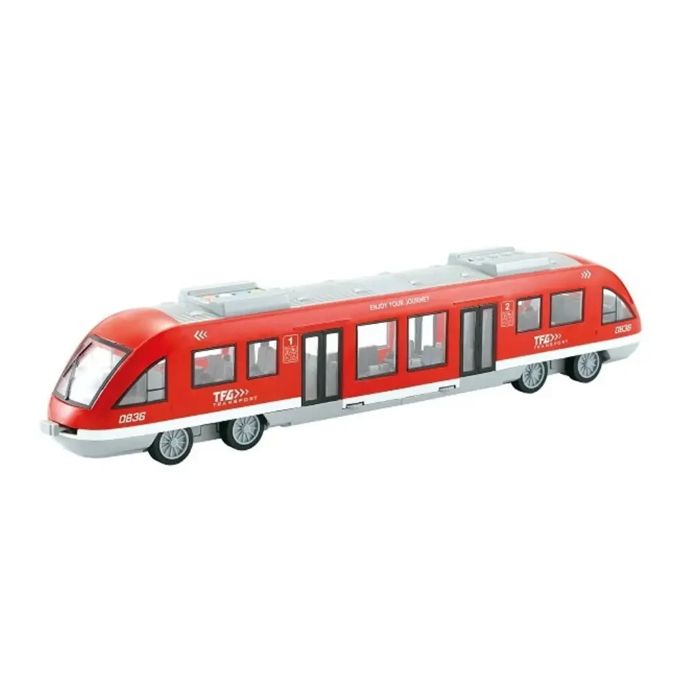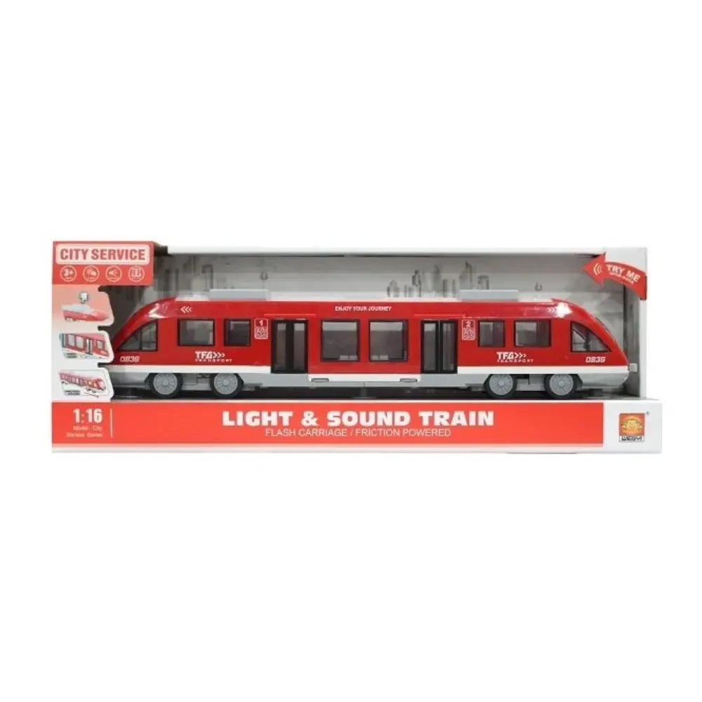 Tramvai pentru copii, cu sistem cu inerție, lumini și sunete, realizat la scară 1:16, ideal pentru jocuri de rol urbane și transport public.