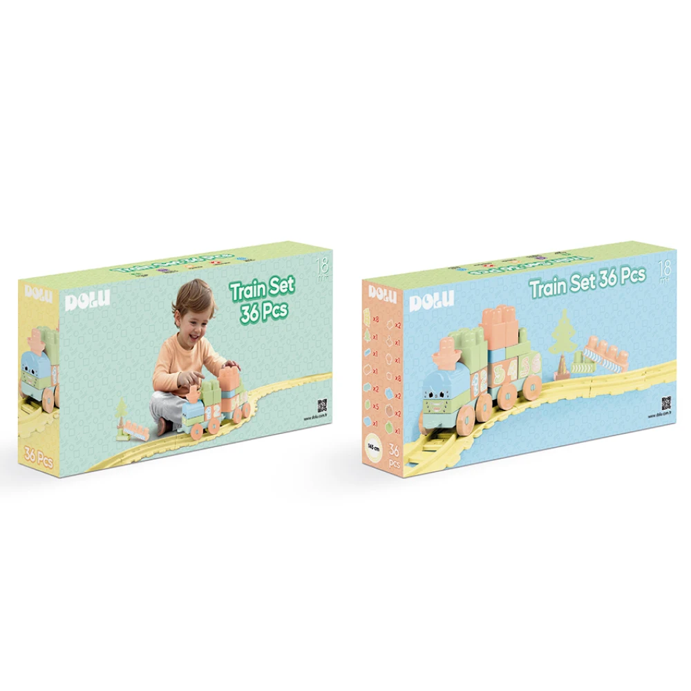 Tren pentru copii cu piese de construcție și șină, conceput pentru joacă interactivă și dezvoltarea creativității. Setul include 36 de piese care permit construirea trenului și realizarea unui traseu complet, oferind copilului posibilitatea de a crea propriile scenarii de joc.