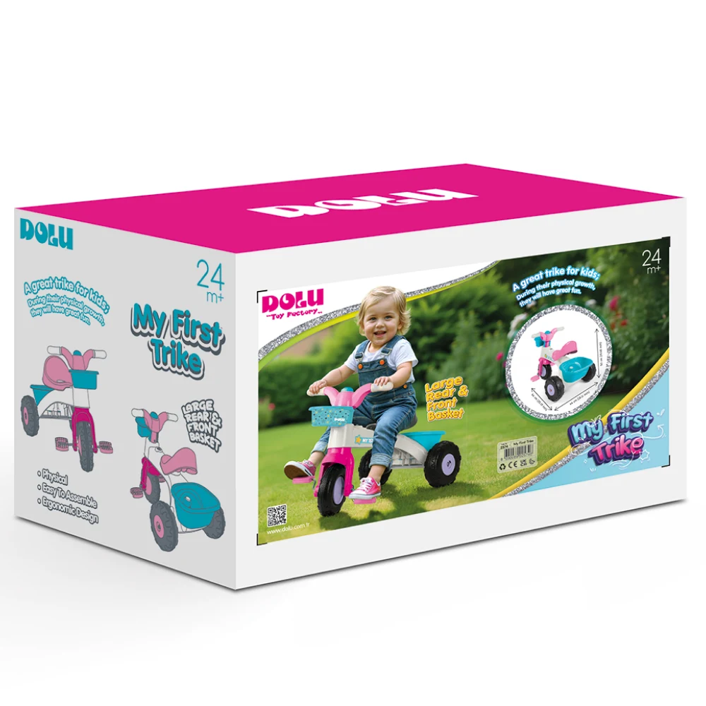 Modelul este prevăzut cu coș frontal și spațiu de depozitare în partea din spate, ideale pentru jucării sau accesorii. Tricicleta este potrivită atât pentru utilizare în exterior, cât și în curte sau grădină, contribuind la dezvoltarea abilităților motorii și a încrederii copilului în propriile mișcări.