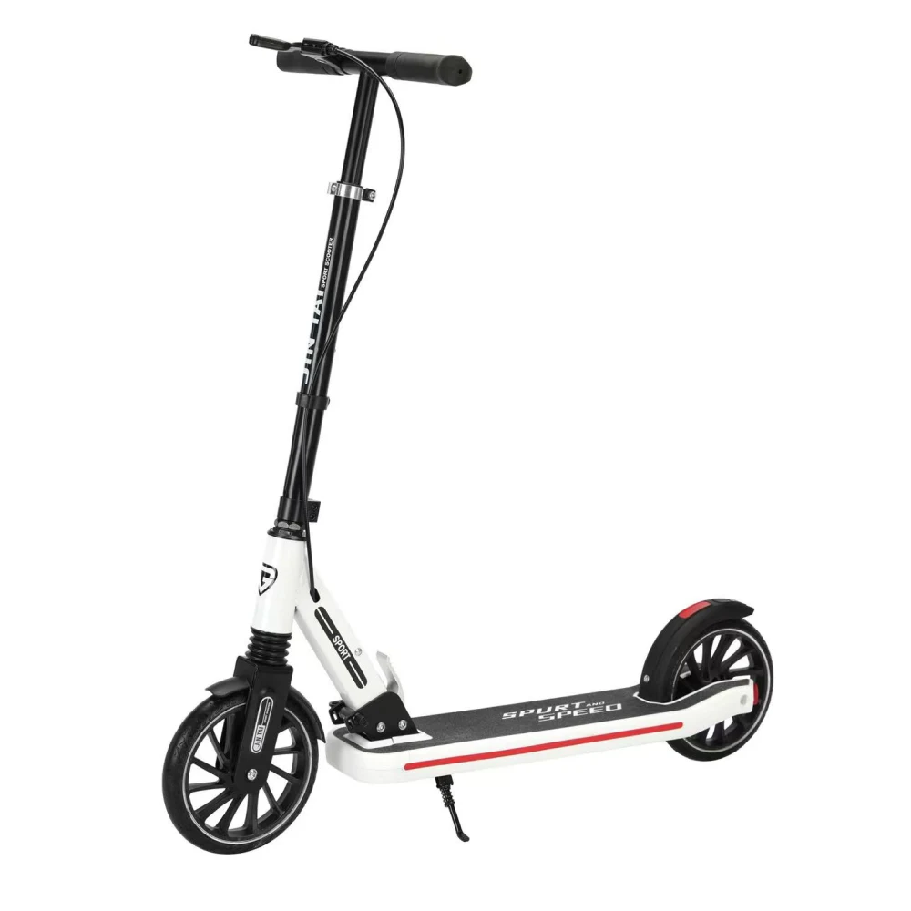 Trotineta este echipată cu roți rezistente din PU care asigură o rulare lină pe diferite tipuri de suprafețe. Suspensia frontală ajută la absorbția șocurilor și oferă o deplasare mai confortabilă iar frâna de mână permite oprirea rapidă și controlată, oferind un plus de siguranță în timpul deplasării.