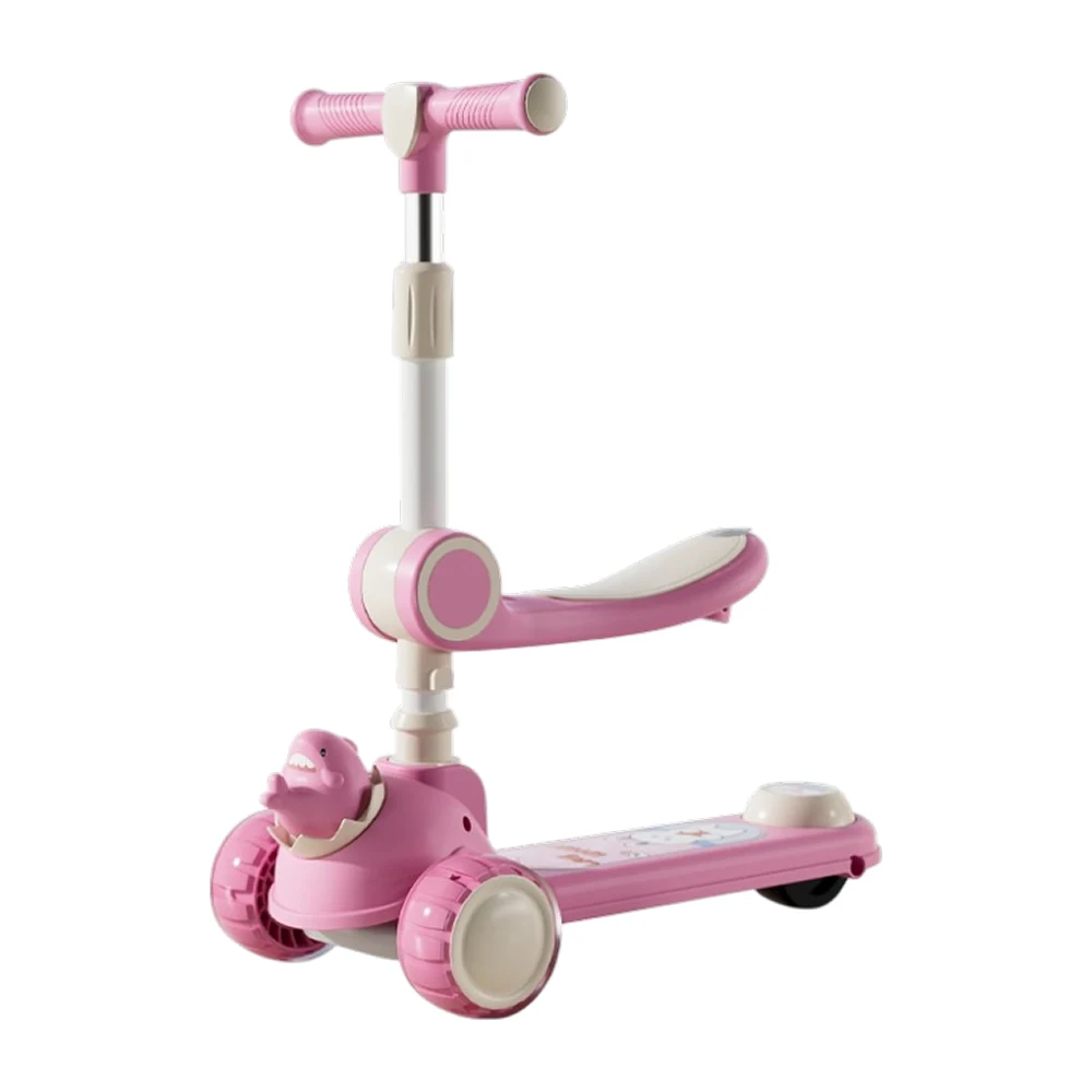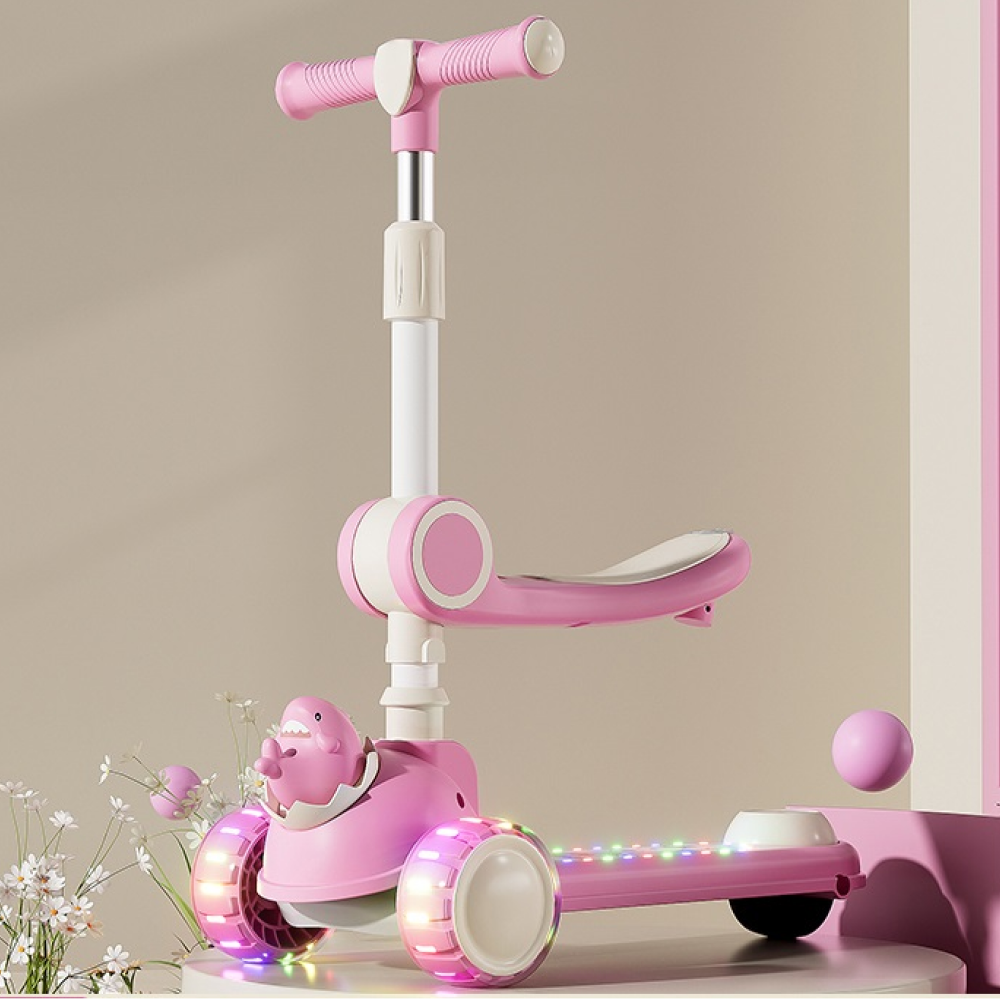 Trotinetă pentru copii 2 în 1 cu scaun, 3 roți luminoase, muzică și lumini