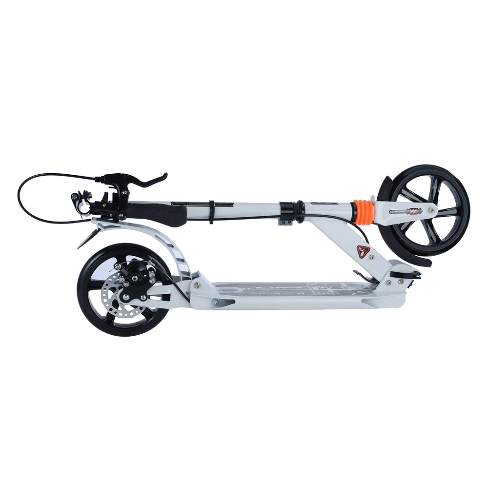 Modelul este echipat cu 2 roți mari din PU de 200 mm, care asigură o rulare lină și stabilă pe diferite suprafețe. Dimensiunea mare a roților contribuie la absorbția mai bună a denivelărilor și oferă o deplasare mai confortabilă comparativ cu trotinetele cu roți mai mici.