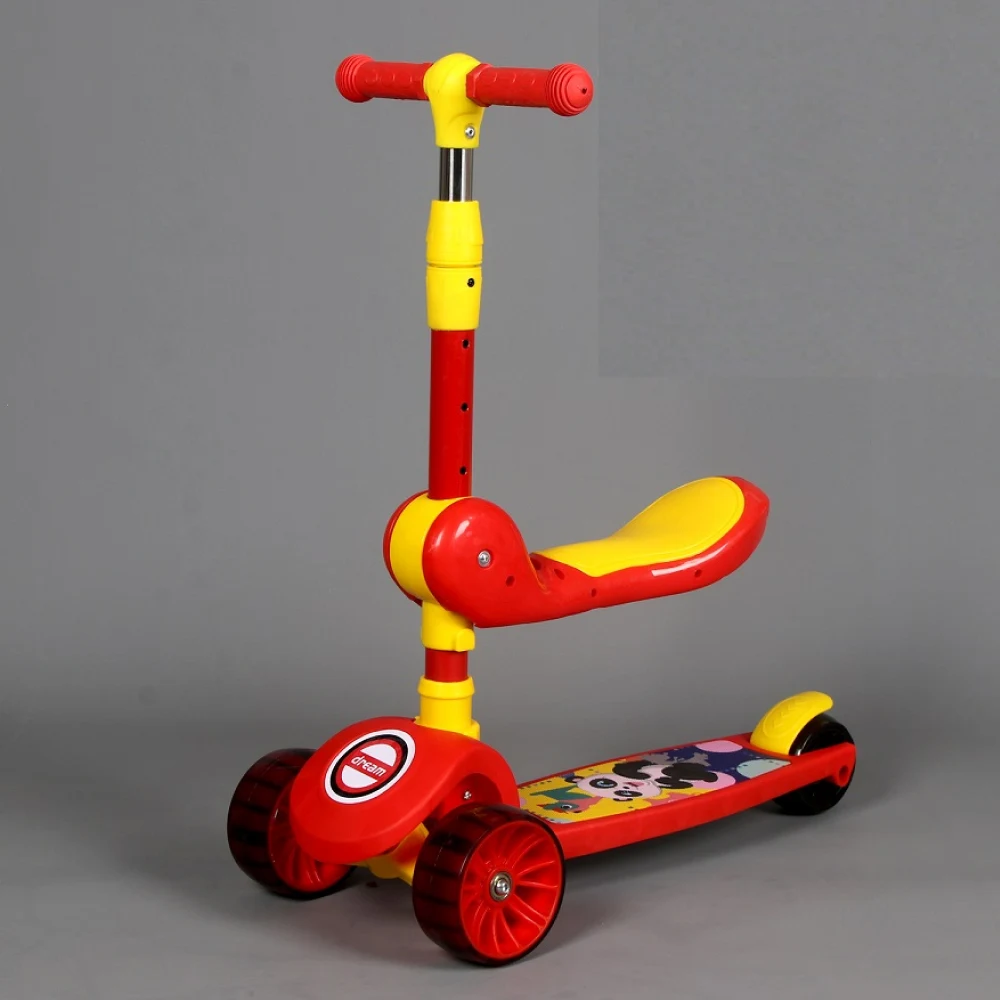 Trotinetă pentru copii 2 în 1 cu scaun, 3 roți luminoase, muzică și lumini
