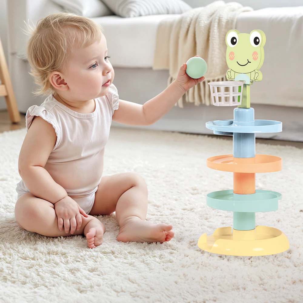 Turn interactiv cu bile pentru copii, conceput pentru joacă educativă și dezvoltarea abilităților motorii. Copilul introduce bila în partea superioară, iar aceasta coboară pe traseu, stimulând atenția și curiozitatea.