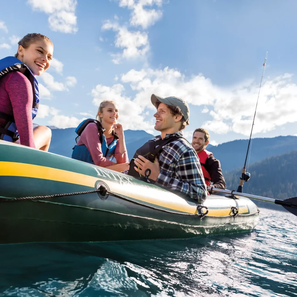Setul include două vâsle, fiind compatibil cu mai multe modele de bărci gonflabile Intex.